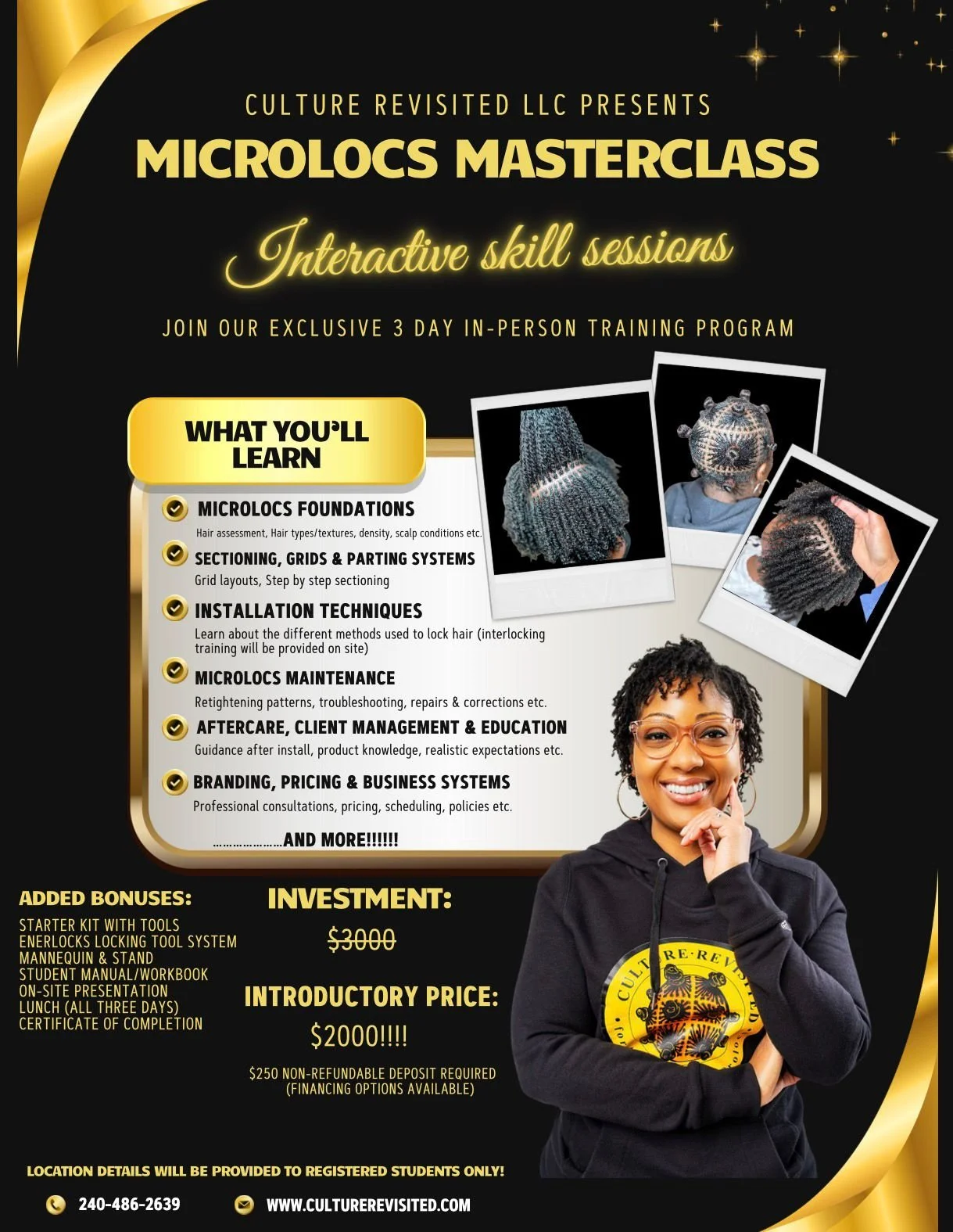 Welcome to the Culture Revisited Microlocs Masterclass — a 3-Day, fully immersive, hands-on training designed to elevate your skills, strengthen your technique, and grow your business.